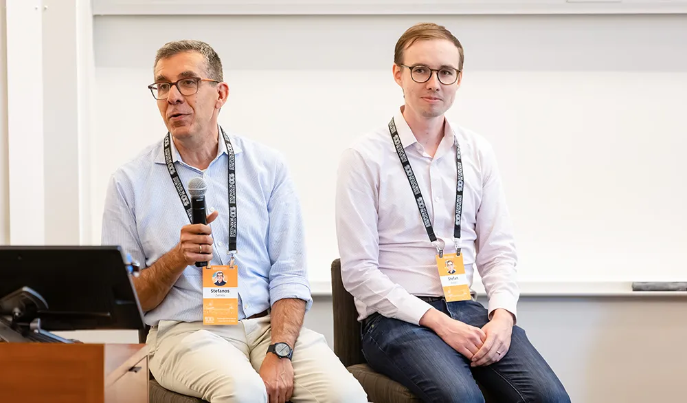 Professor Stefanos Zenios and Associate Professor Stefan Wager at the Faculty Celebration of Scholarship | SF Photo